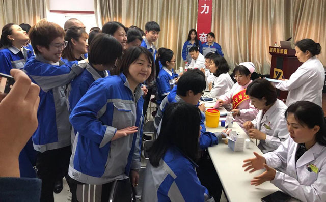 健康知識講解后,醫療專家們為員工開辟了現場診療通道,就內分泌、血壓血糖、骨科、中醫艾灸進行坐診。